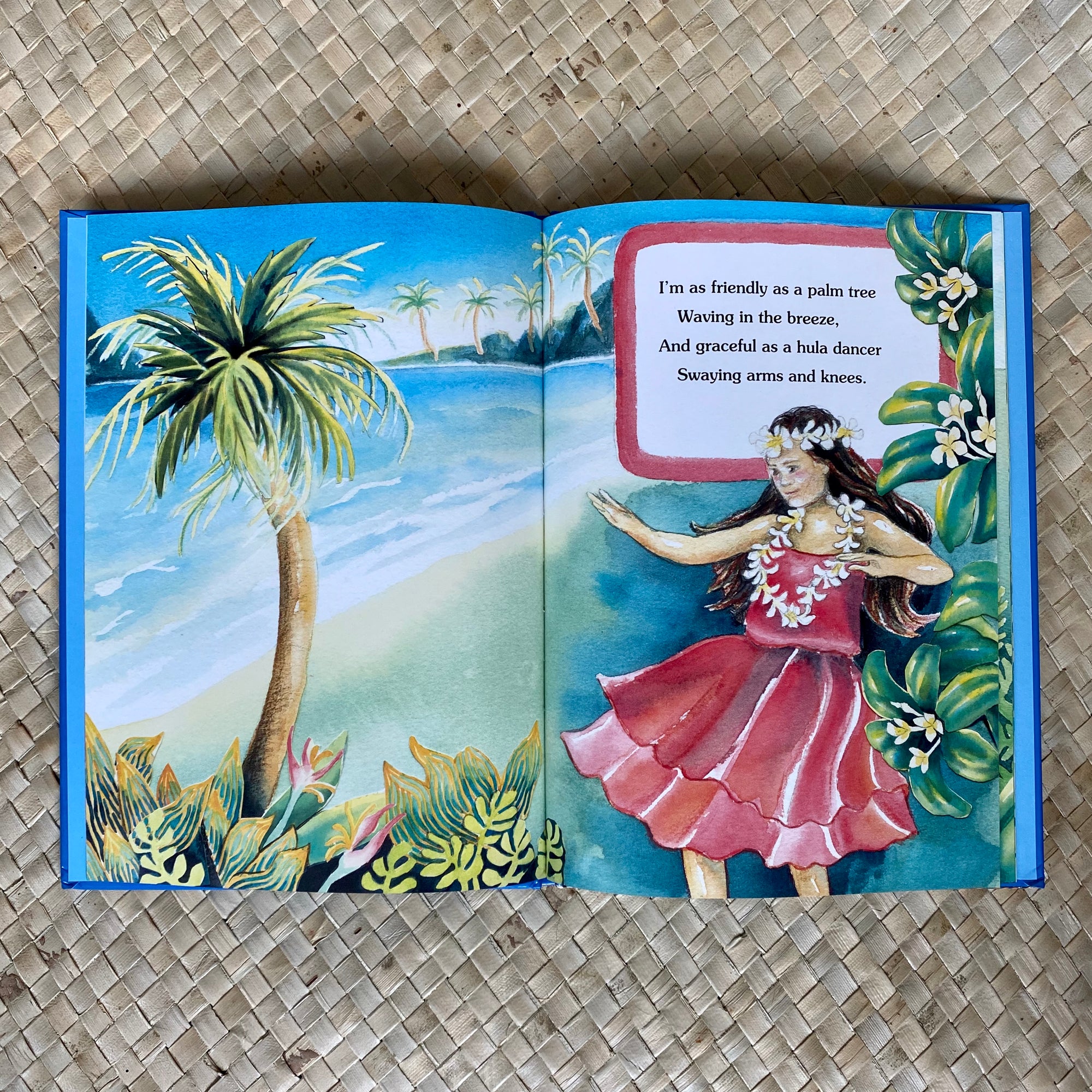 In Happy as a Dolphin, young readers are invited to join a lively Celebration of Hawaii through whimsical illustrations and rhythmic verse. Whether jumping from a wave, threading flowers one by one, or dancing gracefully as a hula dancer; children will enjoy the colorful watercolor illustrations.